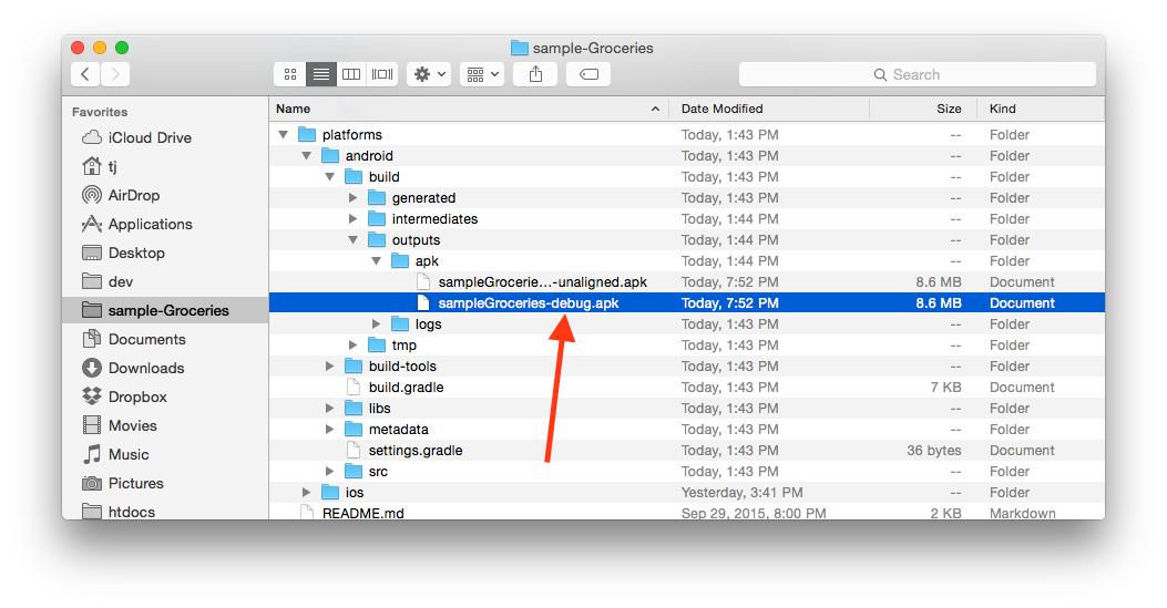 For Android, Appetize wants the -debug.apk file lives in your NativeScript project’s platforms/android/build/outputs/apk folder: